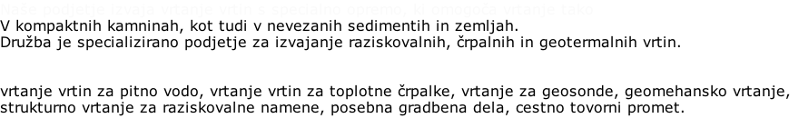 Naše podjetje izvaja vrtanje vrtin s specialno opremo,